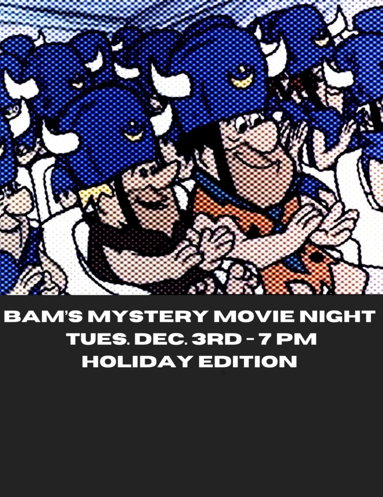 Join the club, learn the secret handshake*, and enjoy Grand Poobah Bam’s super-secret-mystery-holiday-themed movie in the theater! The bar will be open!