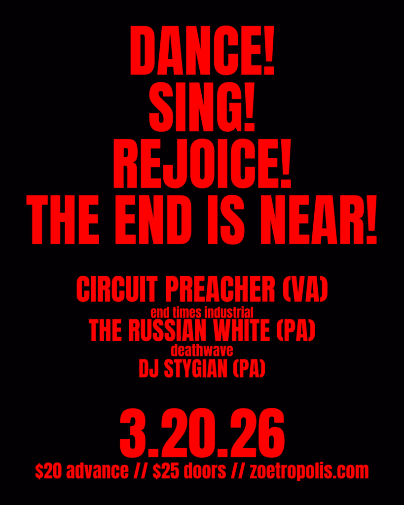 2023 saw the band embark on The Children of the New Dawn tour, spanning 30 dates across the U.S. with I YA TOYAH, Komrads, Solemn Shapes, Silver Walks, and SameStory. Upon return, the two piece signed to Distortion Productions after impressing label owner Jim Semonik. In October 2024, The Russian White released a new batch of menacing deathwave beats on via their full-length album “Funeral Art”.