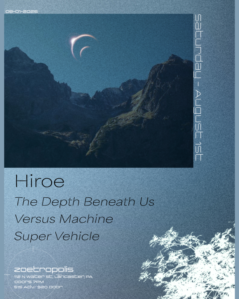 Dates with showtimes for Hiroe feat. The Depth Beneath Us, Versus Machine, and Super Vehicle